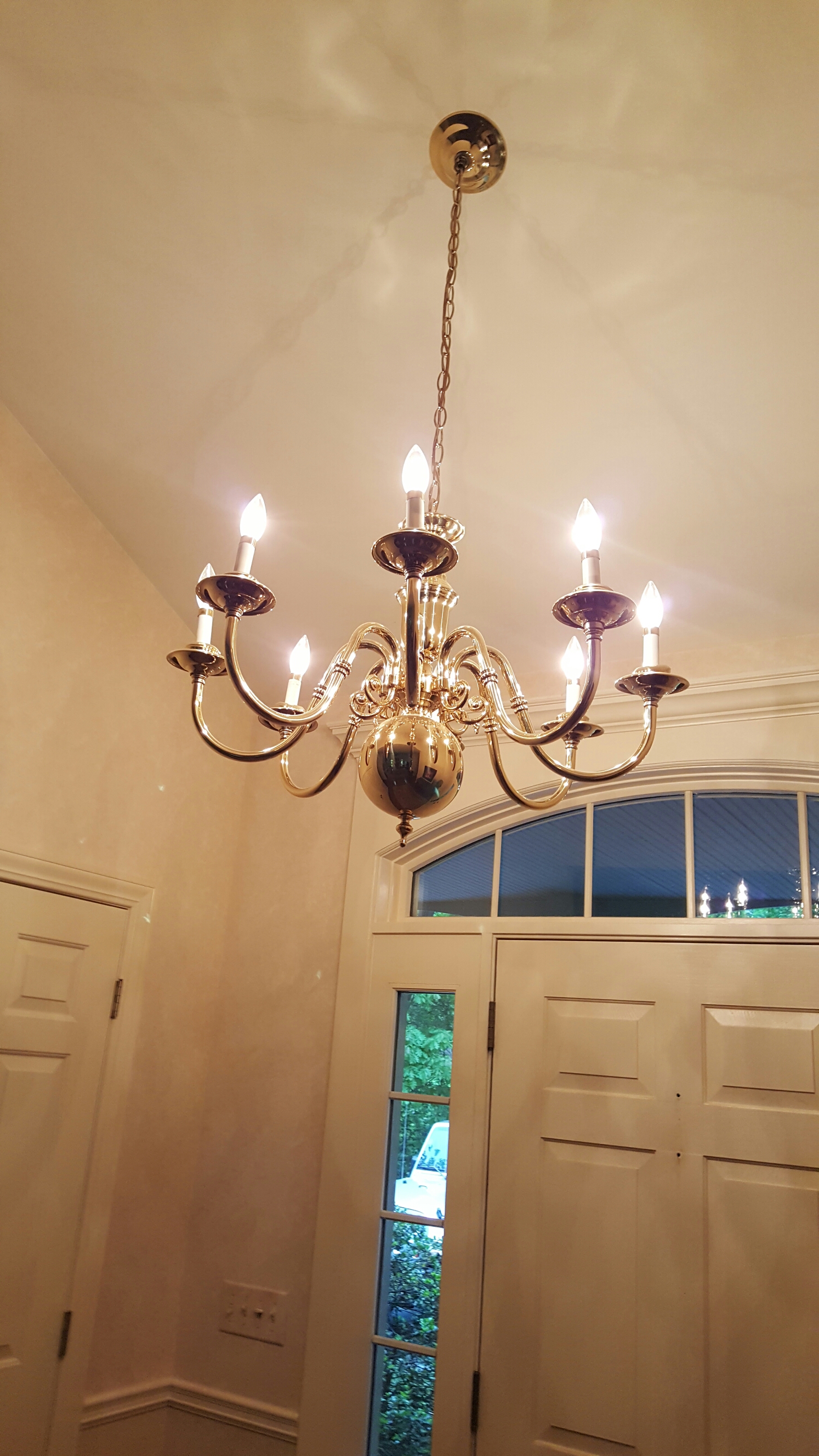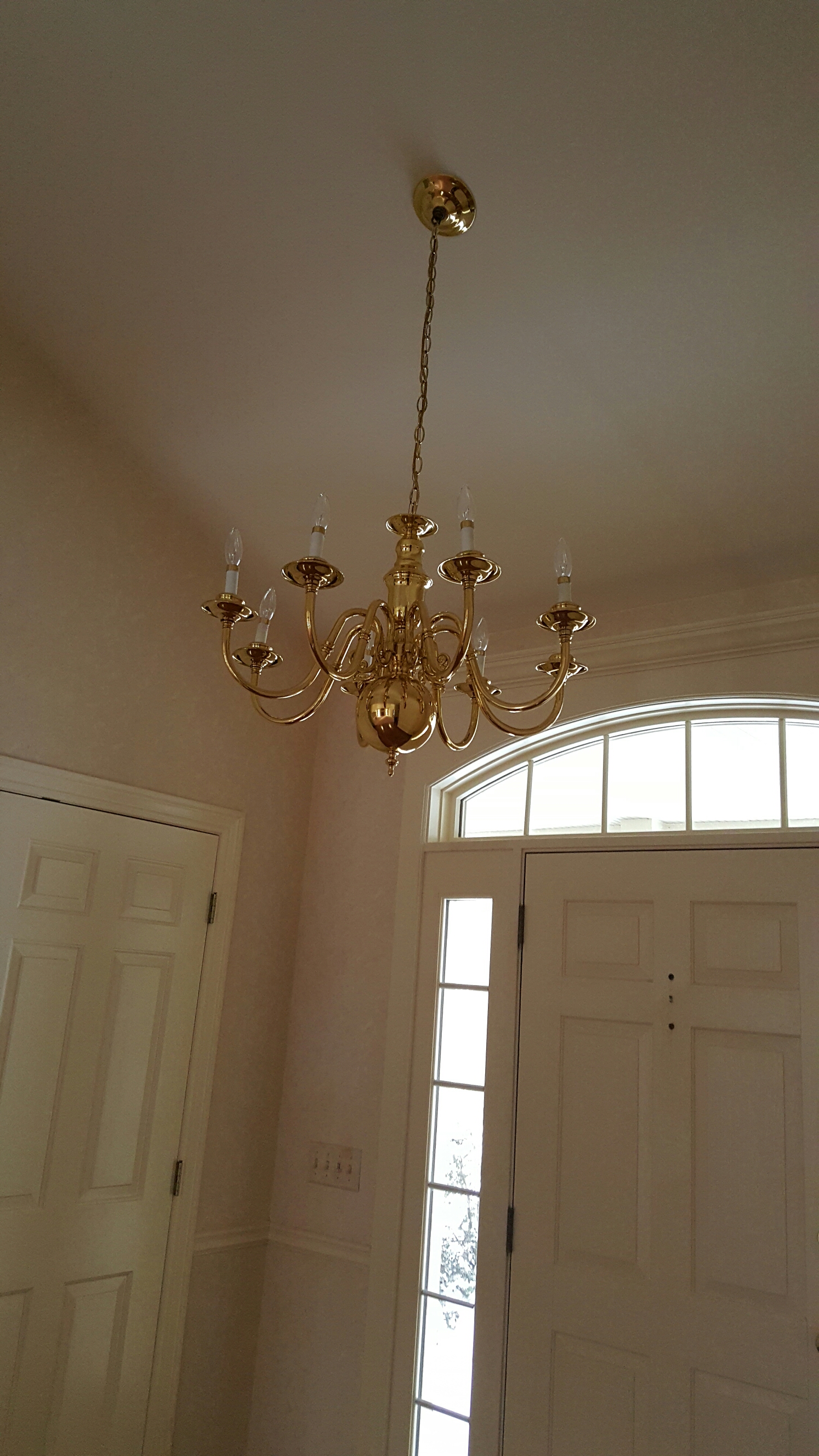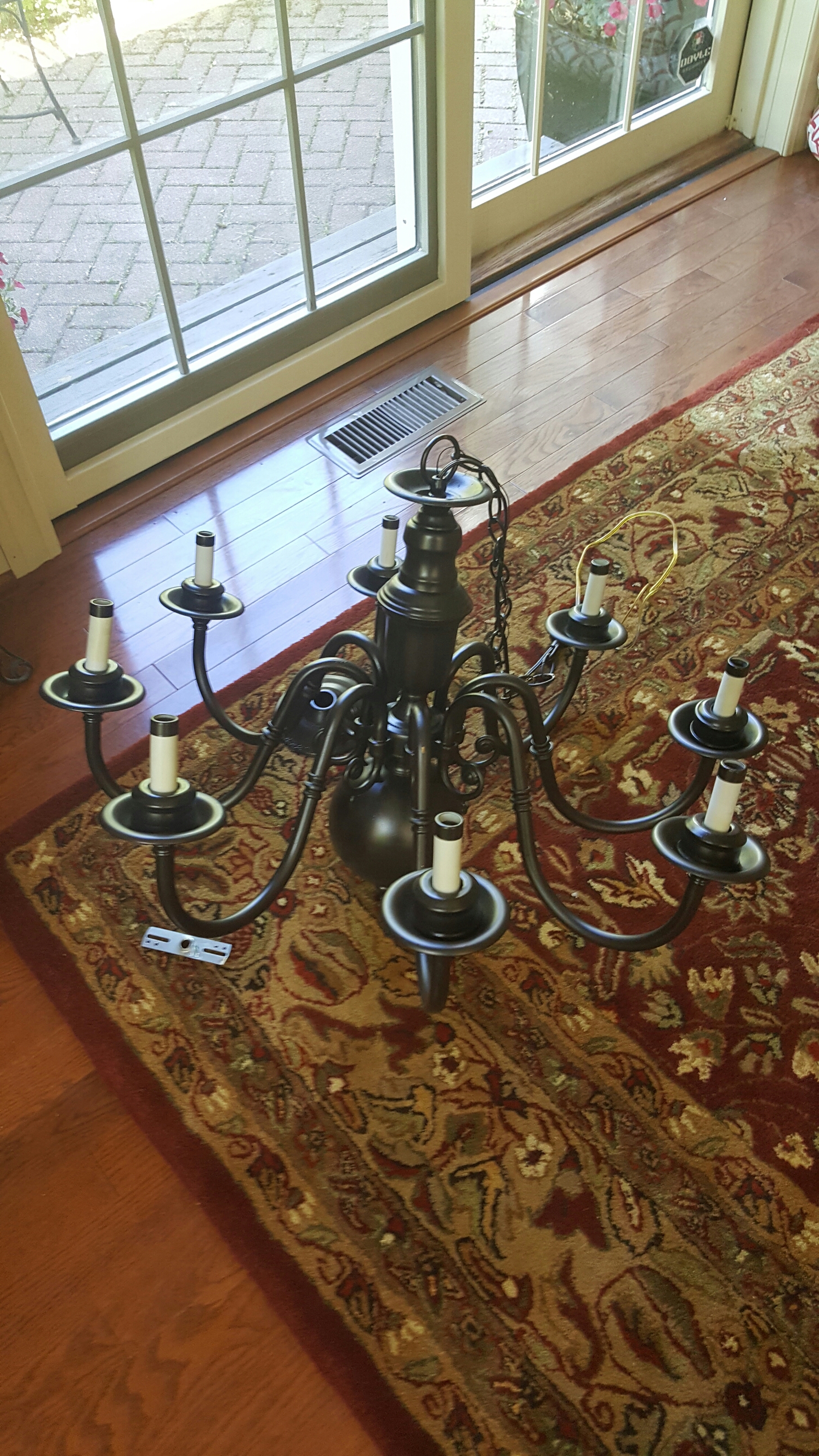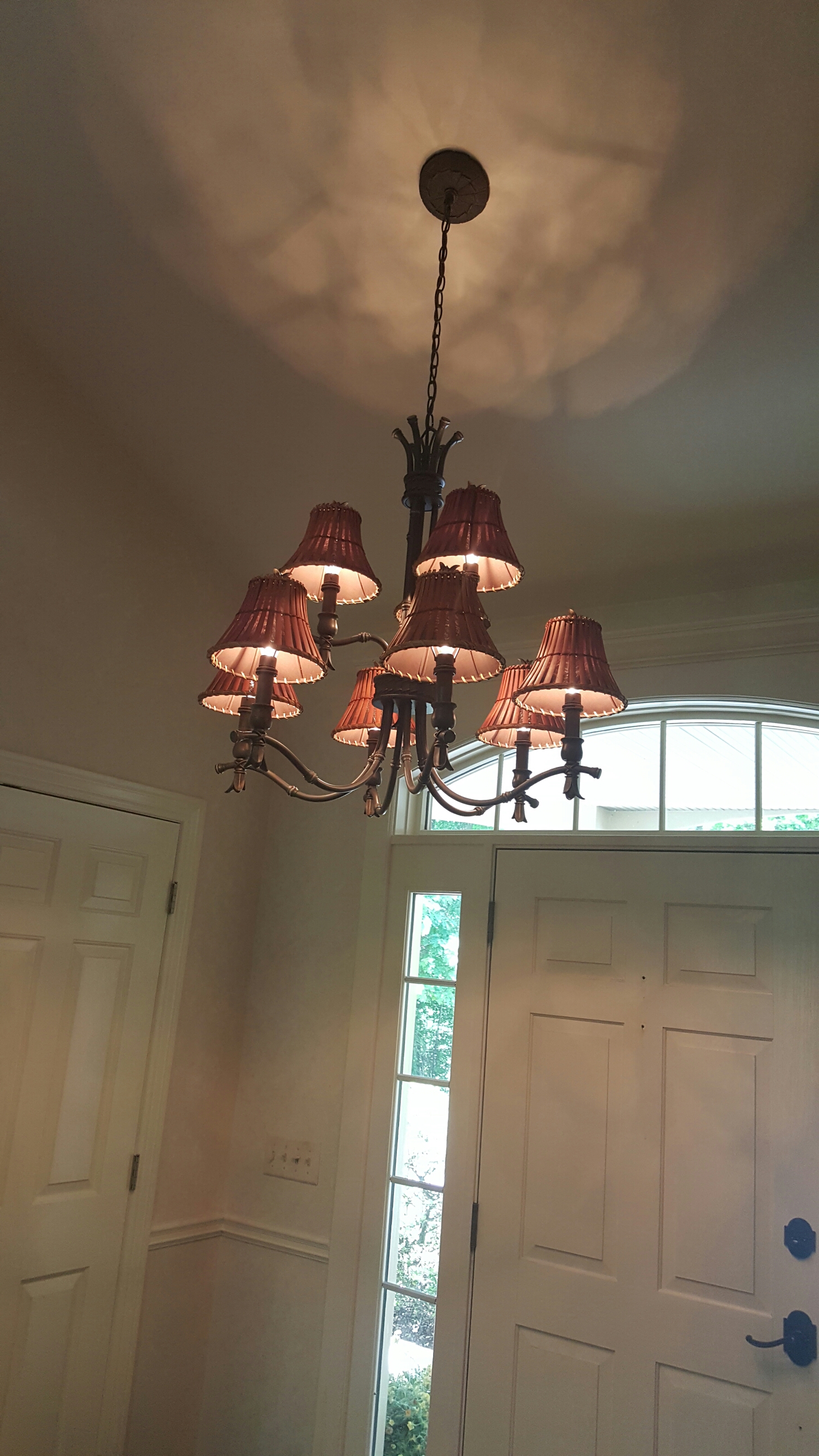We replaced it with an oil-rubbed bronze 2-tiered fixture with bamboo shades.